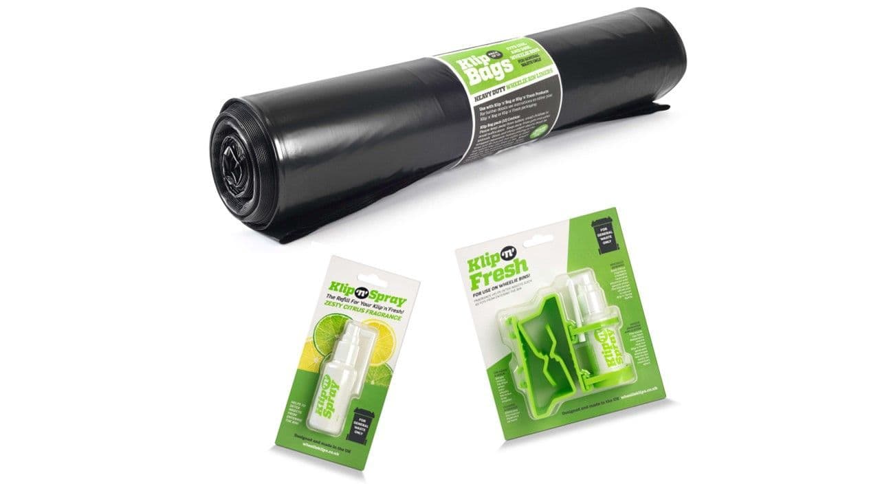 The Super Starter Pack comprise of 1 x Klip n Fresh; 1 x Klip n Spray; and 1 x Klip Bags [roll of 12 liners] Let Klip 'n' Fresh become your bin buddy your will love forever.